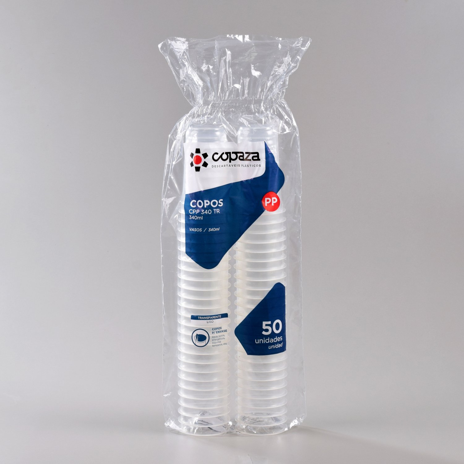 O copo transparente de 340 ml é ideal para envase e consumo de bebidas como sucos, energéticos, água de coco e guaraná. Produzido em polipropileno atóxico e livre de BPA, oferece segurança, resistência e excelente apresentação em eventos, estabelecimentos comerciais ou no uso diário.