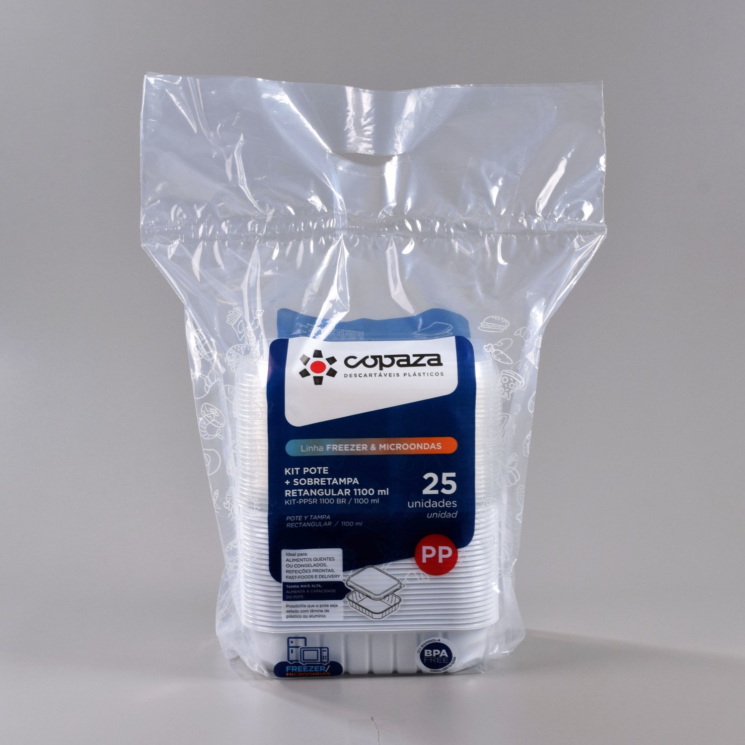Pote Retangular com Sobretampa 1100 ml - C/25 Unidades