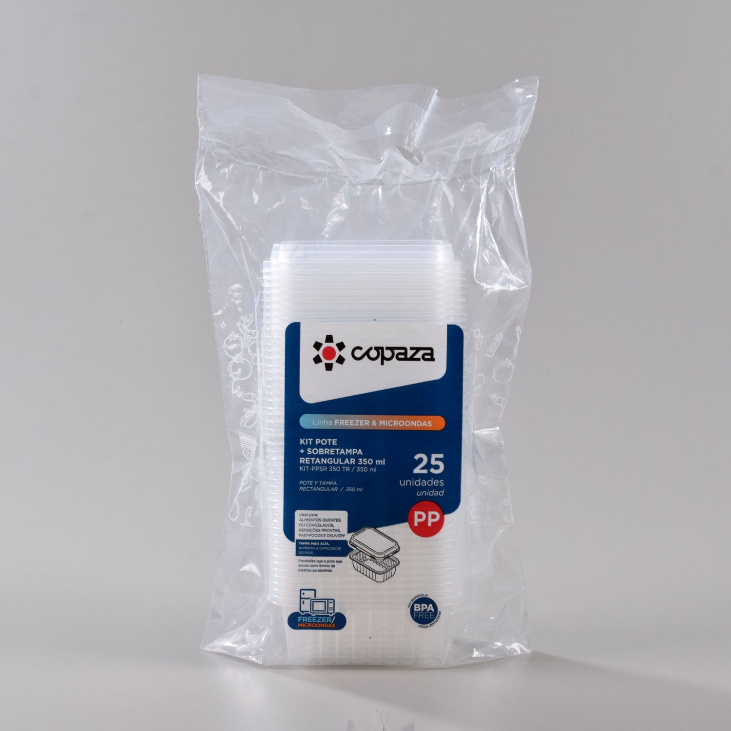 Pote Retangular com Sobretampa 350 ml - C/25 Unidades