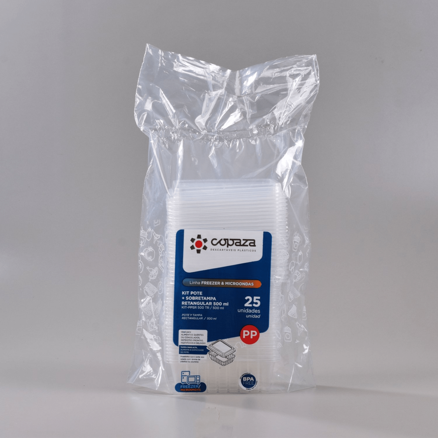 - Indicado para alimentos quentes, congelados, refeições prontas, fast food e delivery