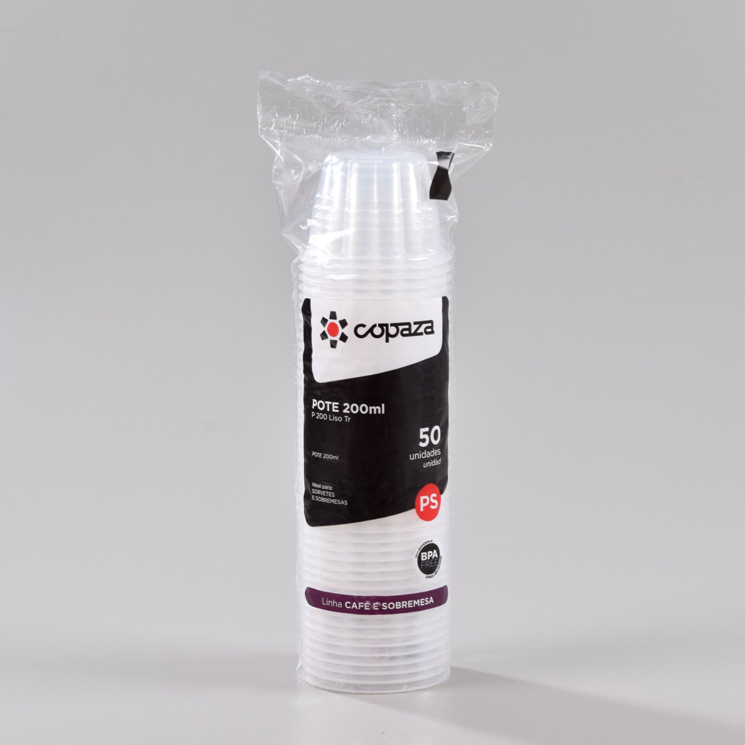 Pote Transparente Gomado 200 ml - C/50 Unidades