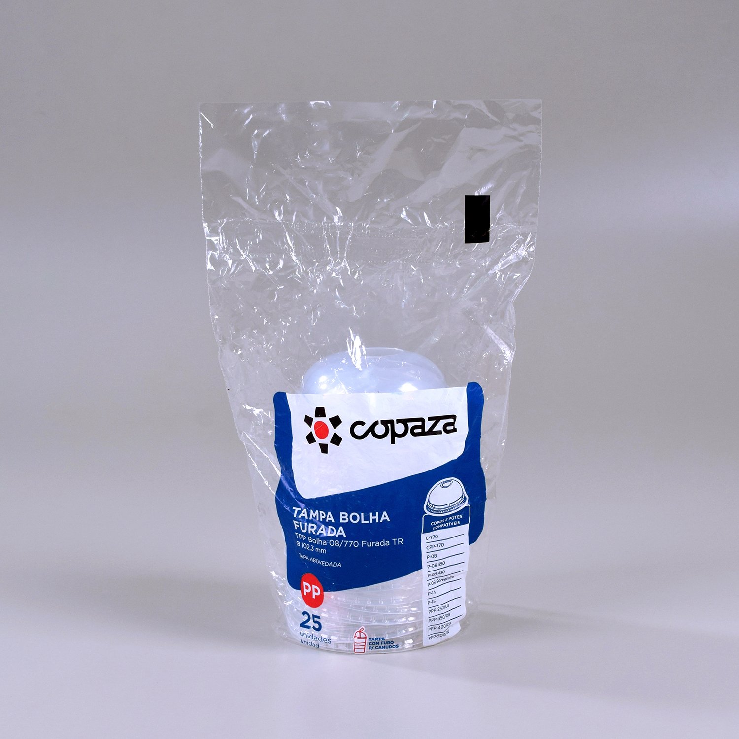 A Tampa Bolha Furada Transparente 08 oferece um fechamento seguro com ventilação, ideal para bebidas que precisam de passagem de ar ou que são consumidas com canudo. Seu formato elevado em bolha permite acomodar coberturas como chantilly, espumas ou pedaços de frutas, sem comprometer o espaço interno. Fabricada em material transparente, leve e atóxico, proporciona uma apresentação atrativa do produto, com praticidade e higiene no manuseio.